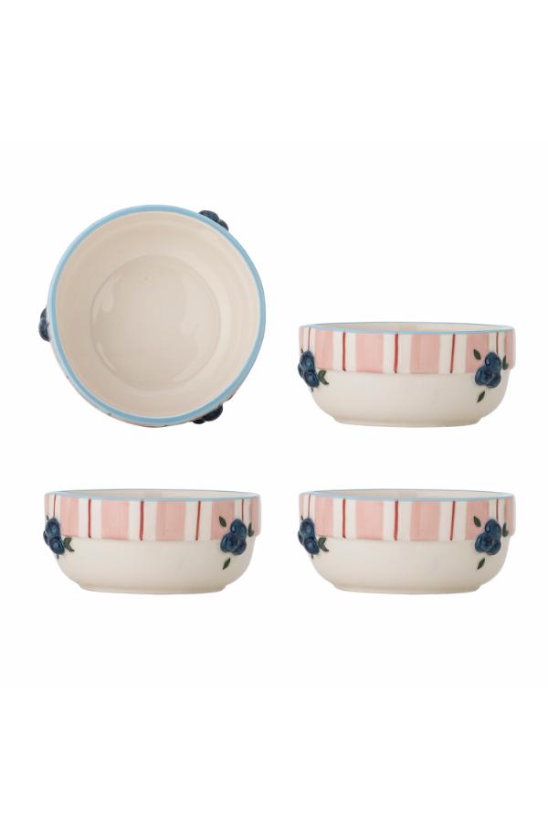 Die Carry Schale von Bloomingville ist eine Steingutschale mit rosé getönter Oberfläche, sanften vertikalen Streifen und kontrastierenden floralen Details. Durch die geprägte, handbemalte Oberfläche hat jedes Teil eine angenehm spürbare Struktur. Kleine Abweichungen im Muster und in der Farbintensität sind möglich und machen jedes Stück einzigartig.