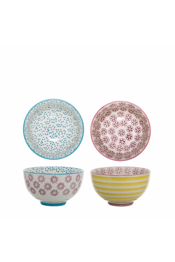 Die Patrizia Schale von Bloomingville kommt in zwei Ausführungen, beide aus Steingut mit dekorativen Mustern, einmal in sanften Gelb- und Rosatönen und einmal in Rosa- und Blautönen. Jede Schale ist mit handgemalten Details verziert, die dem Design eine verspielte Note verleihen und für einen lebendigen, einladenden Look sorgen.