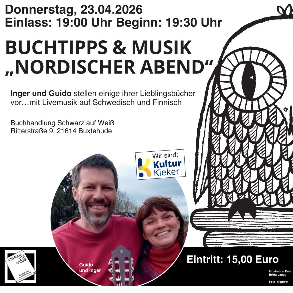 Machen Sie sich bereit für einen fröhlichen Mix aus Literaturschnack und nordischen Klängen in gemütlicher Atmosphäre bei uns in der Buchhandlung.
