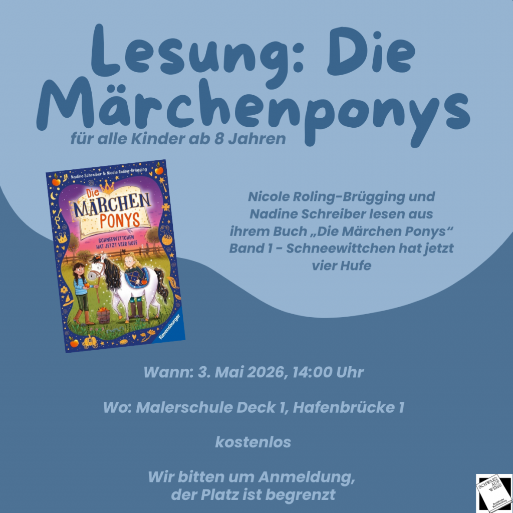 Am Sonntag, den 3. Mai lesen Nicole Roling-Brügging und Nadine Schreiber im Deck 1 aus ihrem Buch ersten Band der „Die Märchenponys“-Reihe vor.